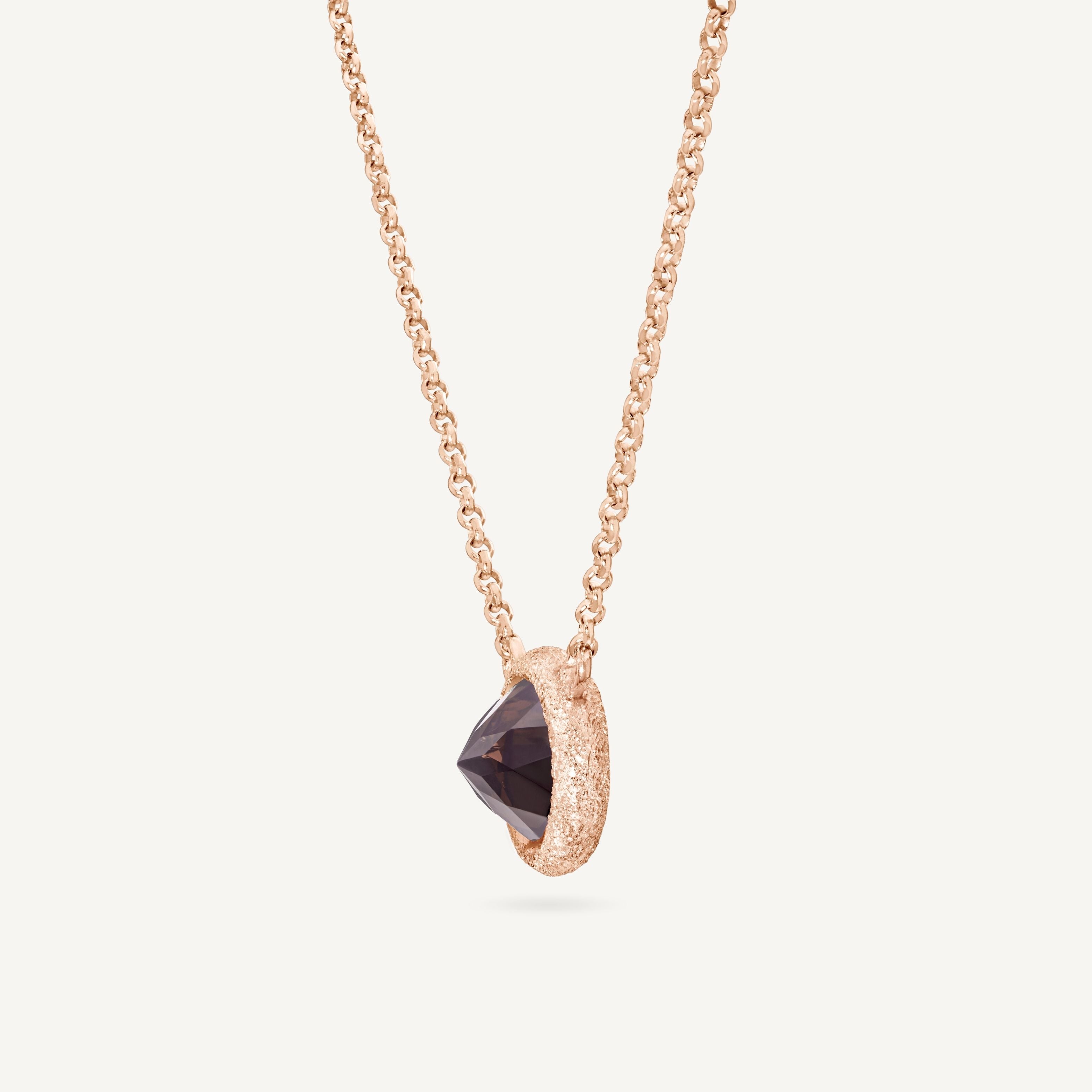 Un pregiato Quarzo Fumè dalle opulente dimensioni è l'indiscusso protagonista di questa iconica collana.