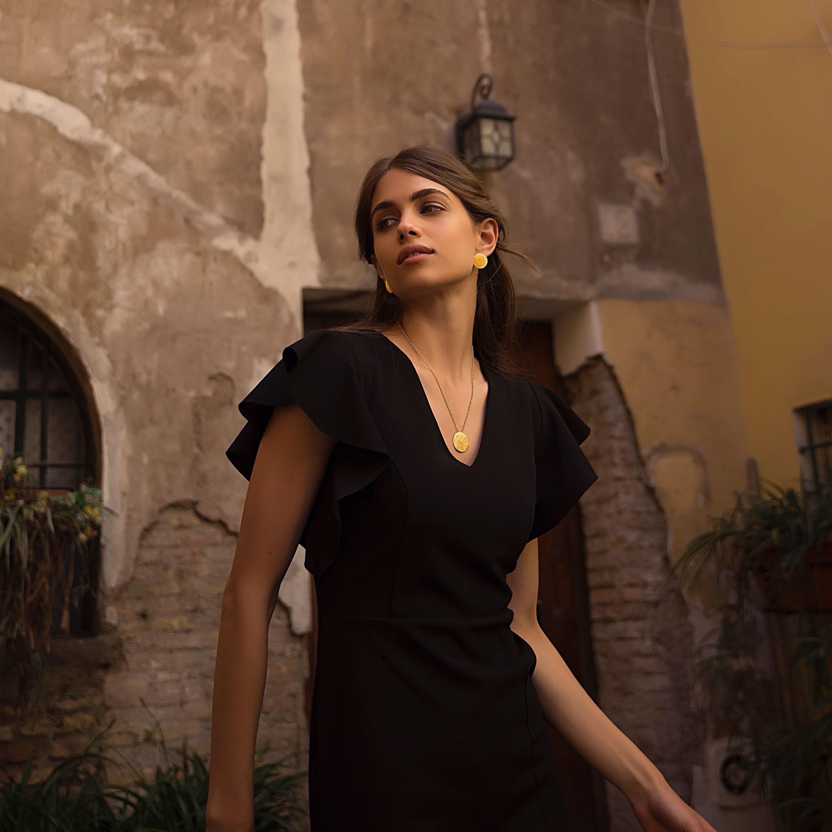 Risalgono all'Era in cui il Mito precede la Storia i più remoti culti e tradizioni legati alla rinascita del Sole. Fonte di vita e di calore, il Sole è protagonista di questo pendente Fucine Romane. Con la superficie diamantata e leggermente bombata, questo gioiello rende omaggio alla sua infinita luminosità, potenza vivificatrice e calore.