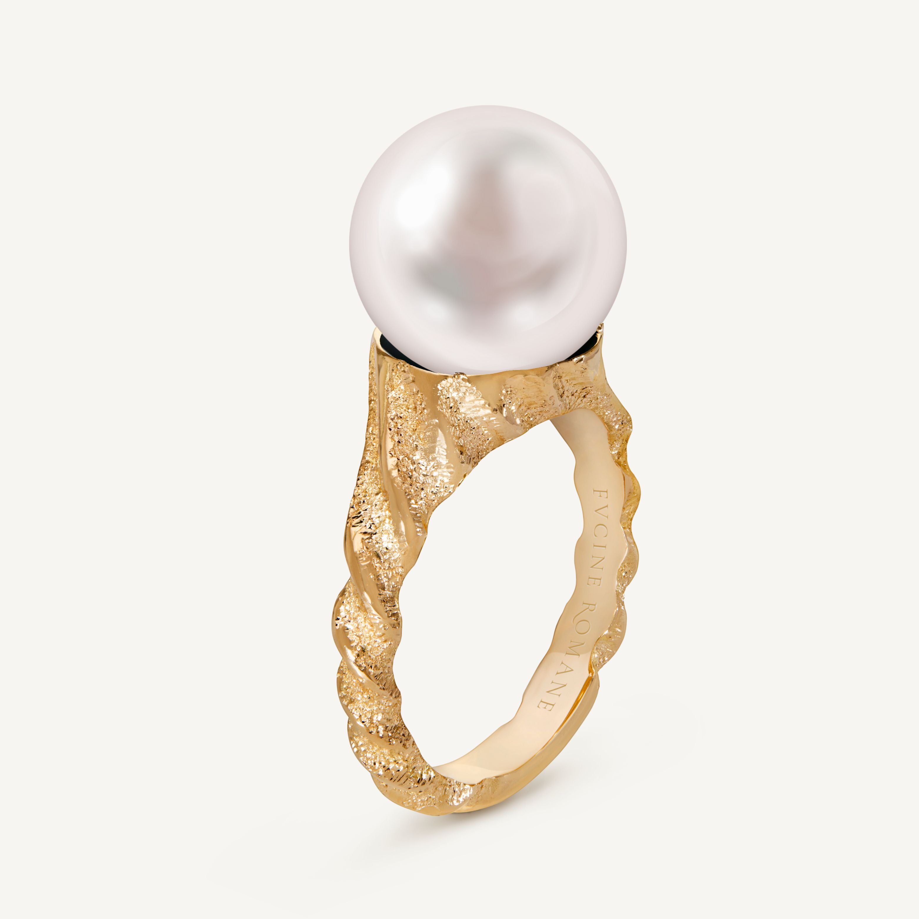 Ogni manufatto è rifinito a mano con l'antica tecnica della diamantatura, cifra stilistica di Fucine Romane, che scolpisce il metallo prezioso per creare un incredibile gioco di luci e riflessi, che ricorda quello di un pavé di finissimi diamanti.