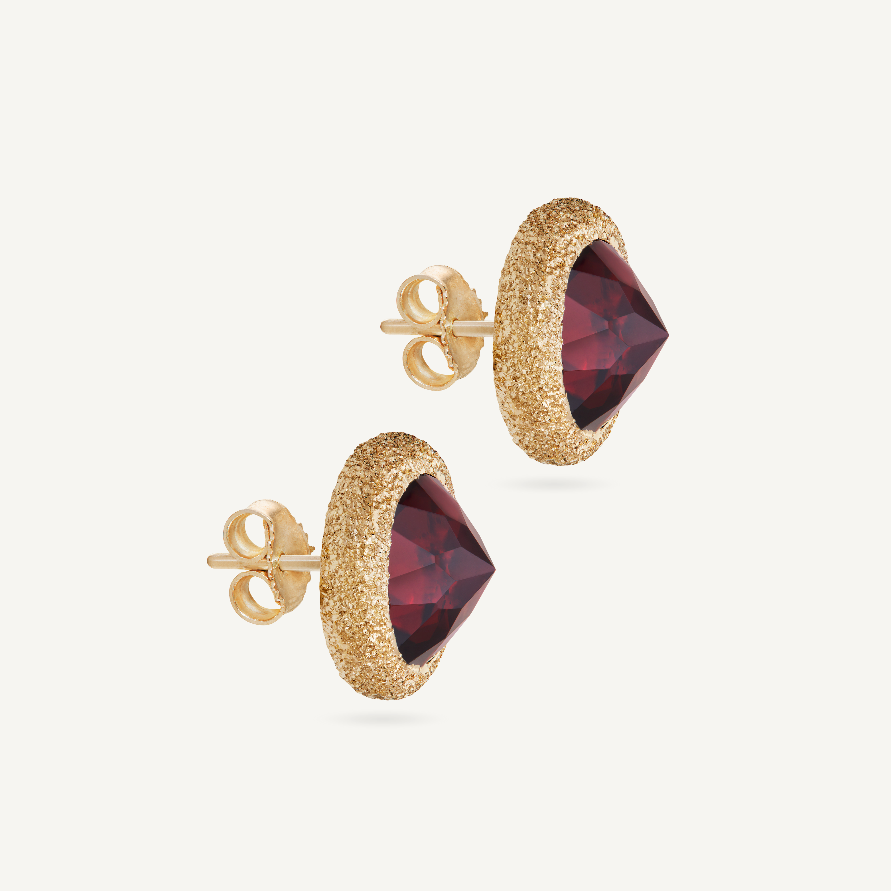 Due pregiati Granati rossi dalle opulente dimensioni sono gli indiscussi protagonisti di questi iconici orecchini.